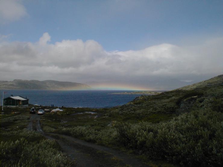 Flat rainbow over lake