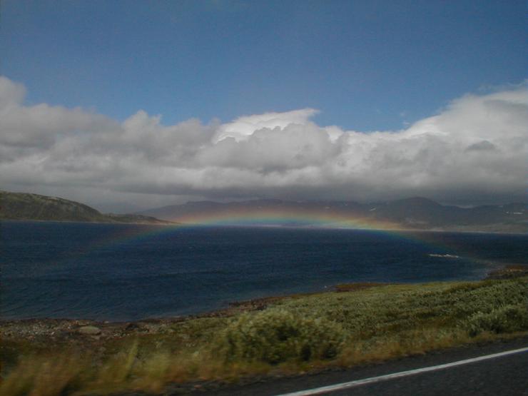 Flat rainbow over lake