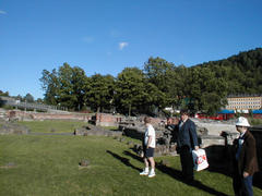 Before Intercon, Johannes shows Nathan, Per, and Vernor Vinge (guest of honor of Intercon) around Gamlebyen in Oslo, and the medival ruins there.