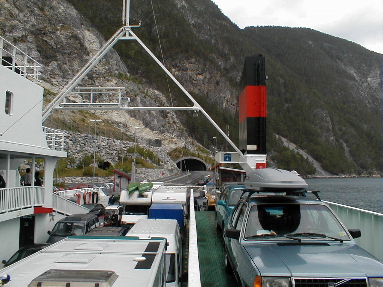 The ferry terminal at Mannheller. Notice how the how the highway tunnels through the mountain to end right at the terminal.