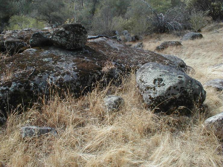 John and Per were warned (briefly this time) by a rattlesnake, on the area North-West of the vineyard above the bend in the river. At least, I think that's what's in this picture - now I can't see it,