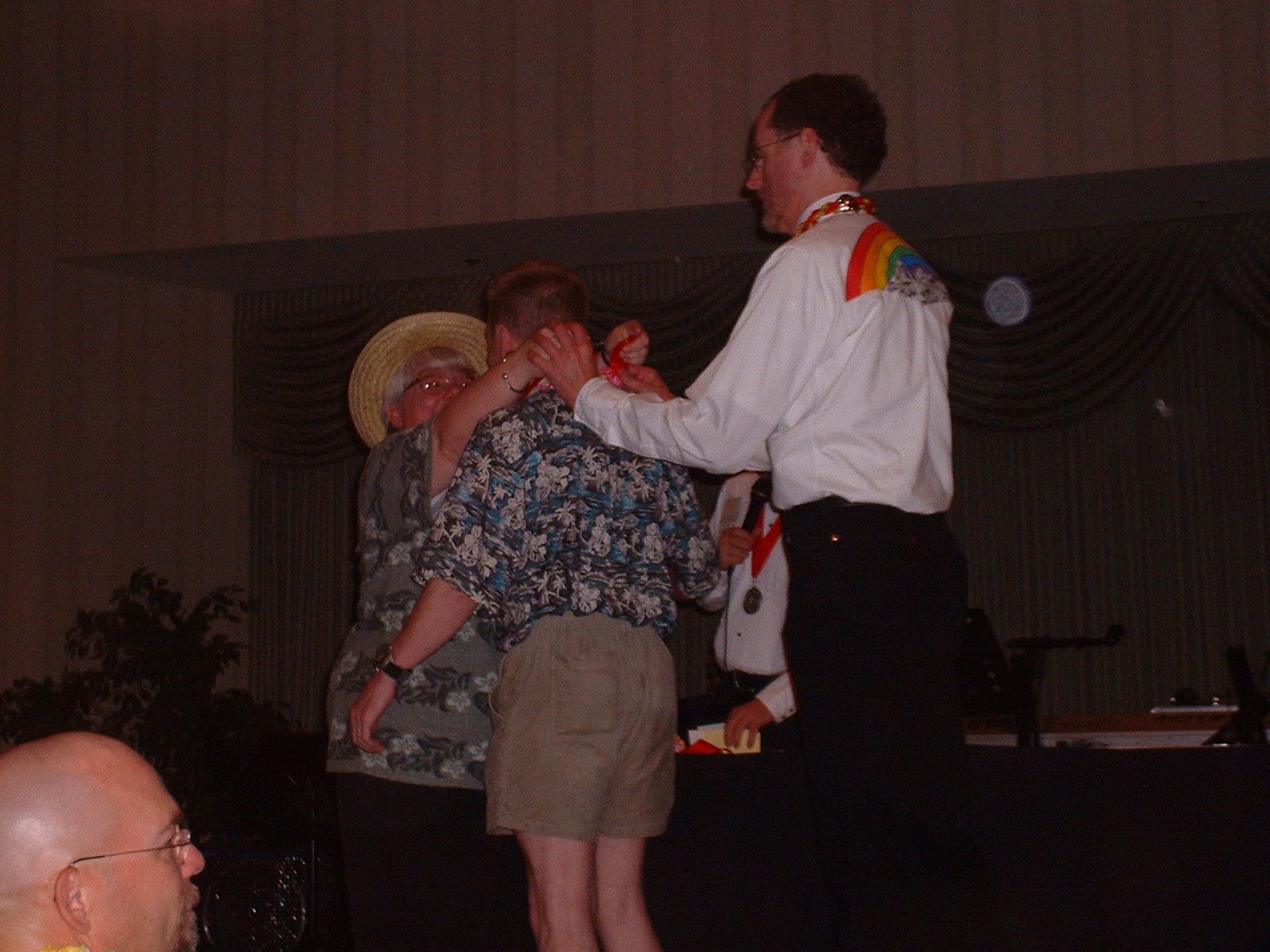 Ett McAtee and Karl Jaekel pin the medallion on Nathan. Rick Hawes is mostly hidden.