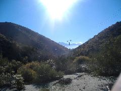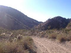 We found this canyon using the map, and decised to check it out. It started in Desert Hot Springs, and continued North, finally ending at Yucca Valley on the other side. The road was reasonably well-maintained, but very sandy, and one very steep area - i.e. 4wd only! We later found out it was Little Morongo Canyon.