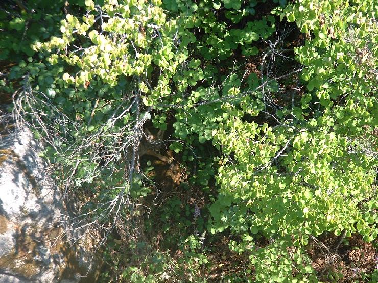 Coyote peeking from bushes