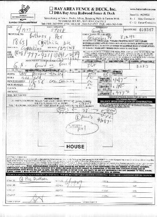 The work estimate from Bay Area Fence & Deck: